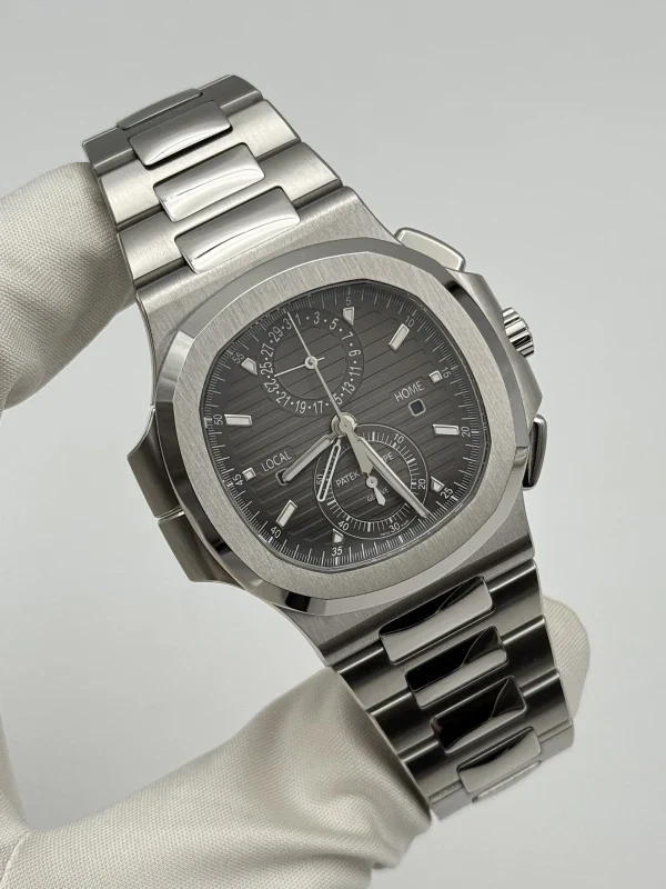 5990/1A-001 Patek Philippe Nautilus Chronograph Travel Time Stainless Steel Men's Watch.Â