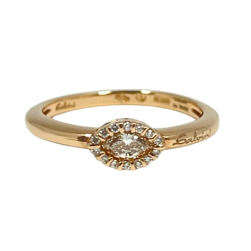 20043684 Salvini This Ladies ring is made of 18k Rose Gold and comes in classic shape. It is decorated by marquise cut diamond (0.14ctw) and round cut diamonds (0.06ctw).