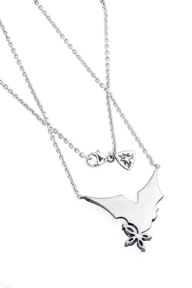 BAT PEND Stephen Webster  Original necklace from the Stephen Webster jewelry company. "Jewels Verne" this pendant is made from 18K White Gold (4g), decorated with Black Sapphires (43pc/0,45Ct) on the wings and Blue marquise shaped Sapphires (4pc/0,50Ct) on the bottom. Chain length: 8 in, pendant: 1 in